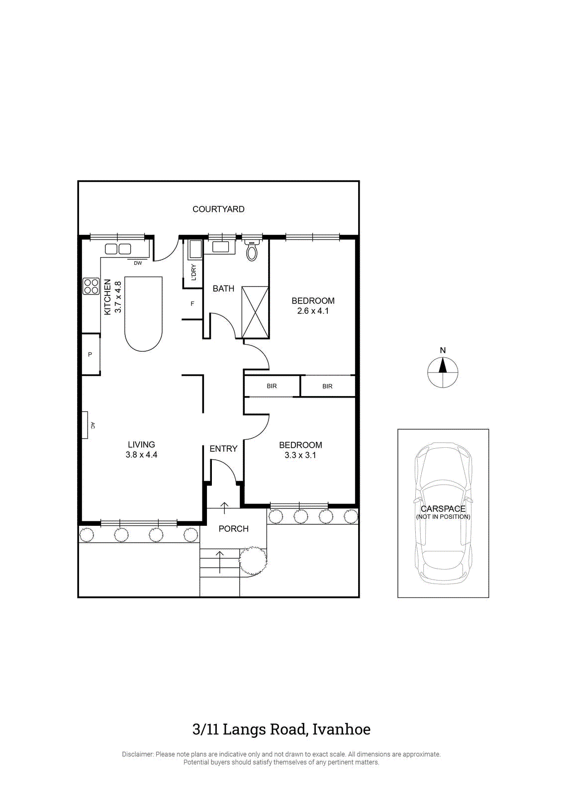 Both bedrooms are generous in size with mirrored built-in robes, well serviced by a modern bathroom featuring a walk-in rain shower and clever storage in the vanity and towel cupboard. Highlights include a north-facing courtyard, split system air conditioning, outdoor awnings, plantation shutters and an off-street car space.