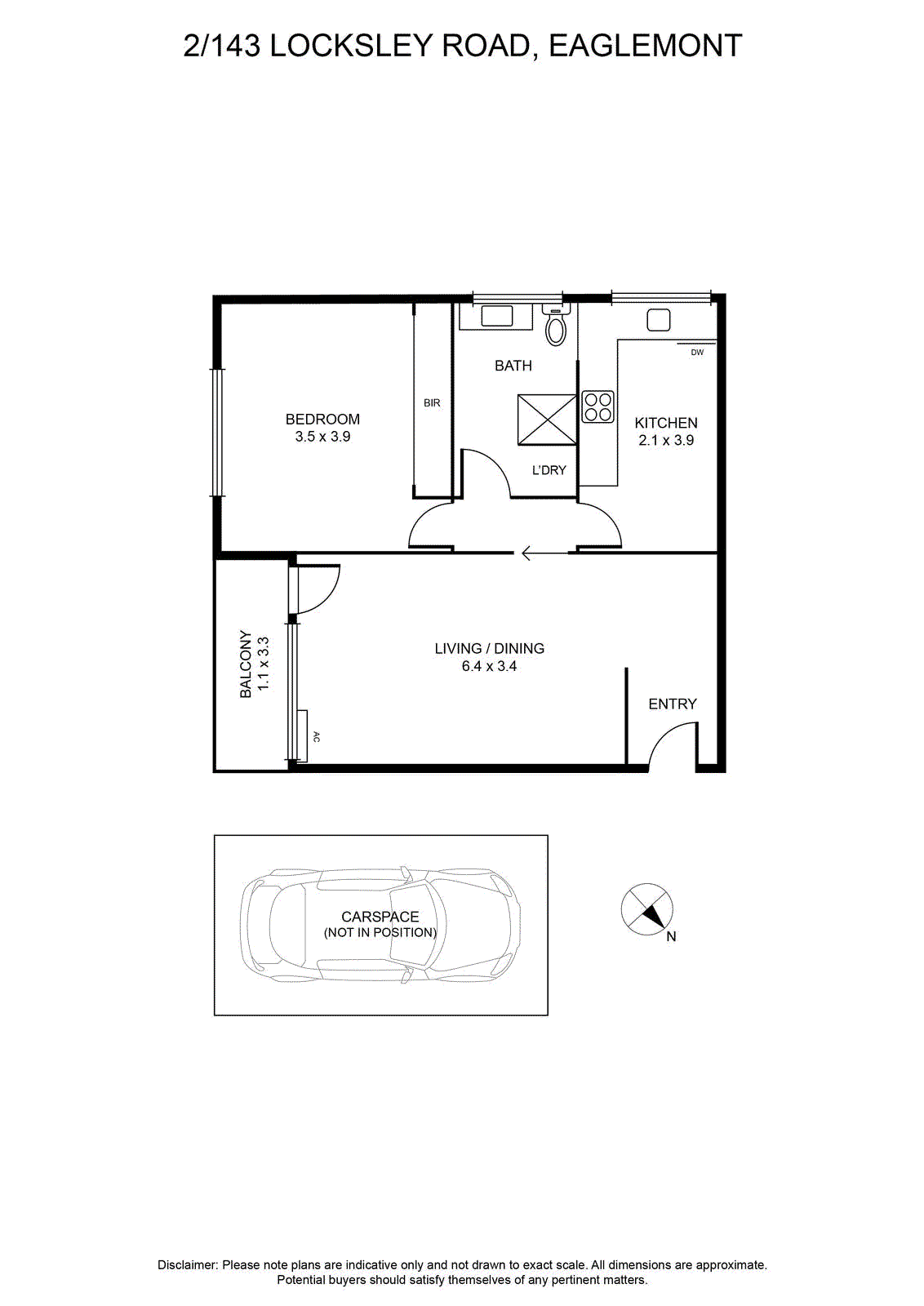 The accommodation includes a well-sized bedroom with built-in robes, serviced by a central bathroom incorporating an internal laundry. A dedicated car space completes the offering.