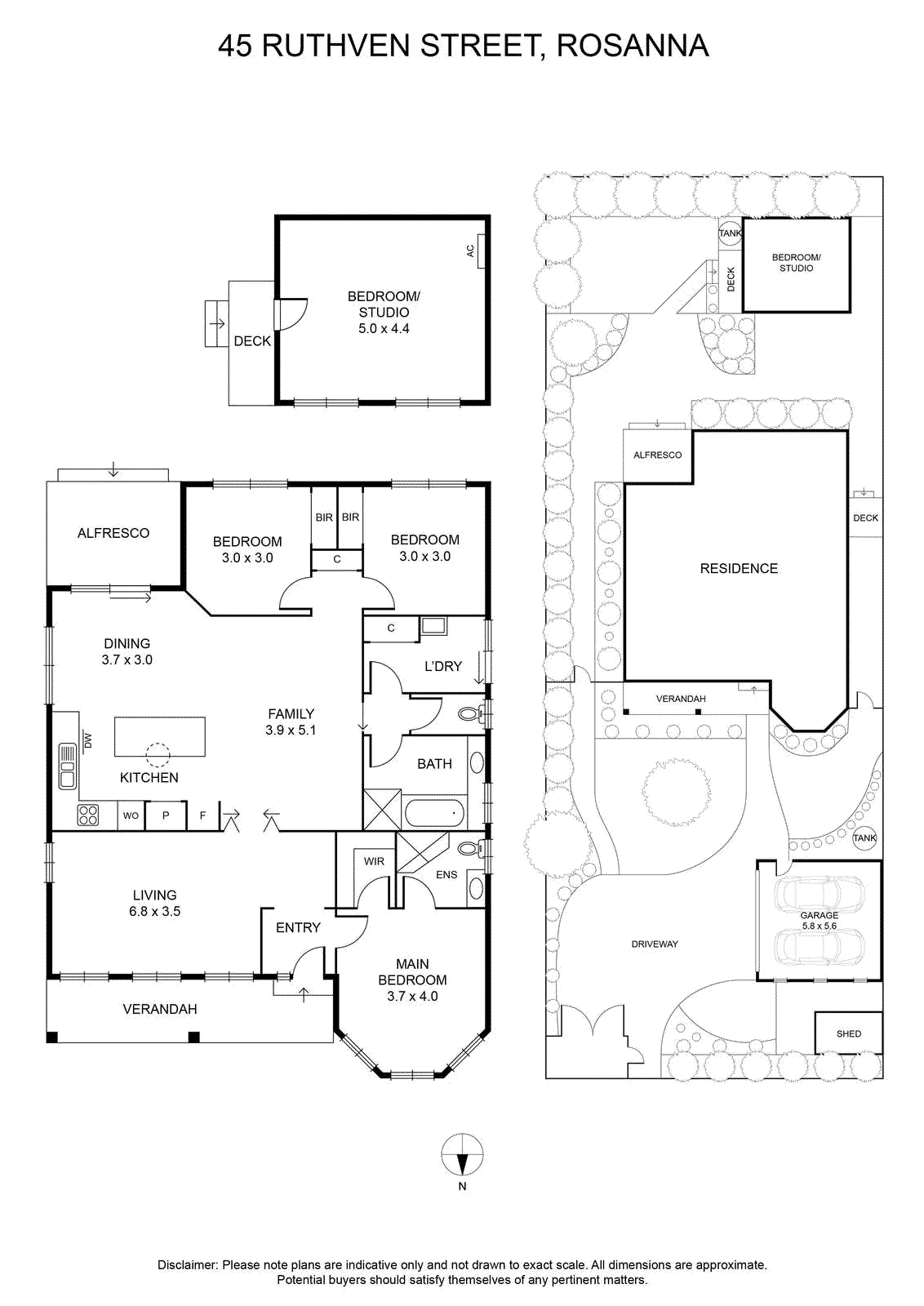 A detached 4th bedroom/studio complete with split-system heating and cooling adds exceptional flexibility ideal for a home office, guest retreat, creative space or independent living zone. Two water tanks, a garden shed and thoughtful landscaping enhance the practicality of the outdoor areas.