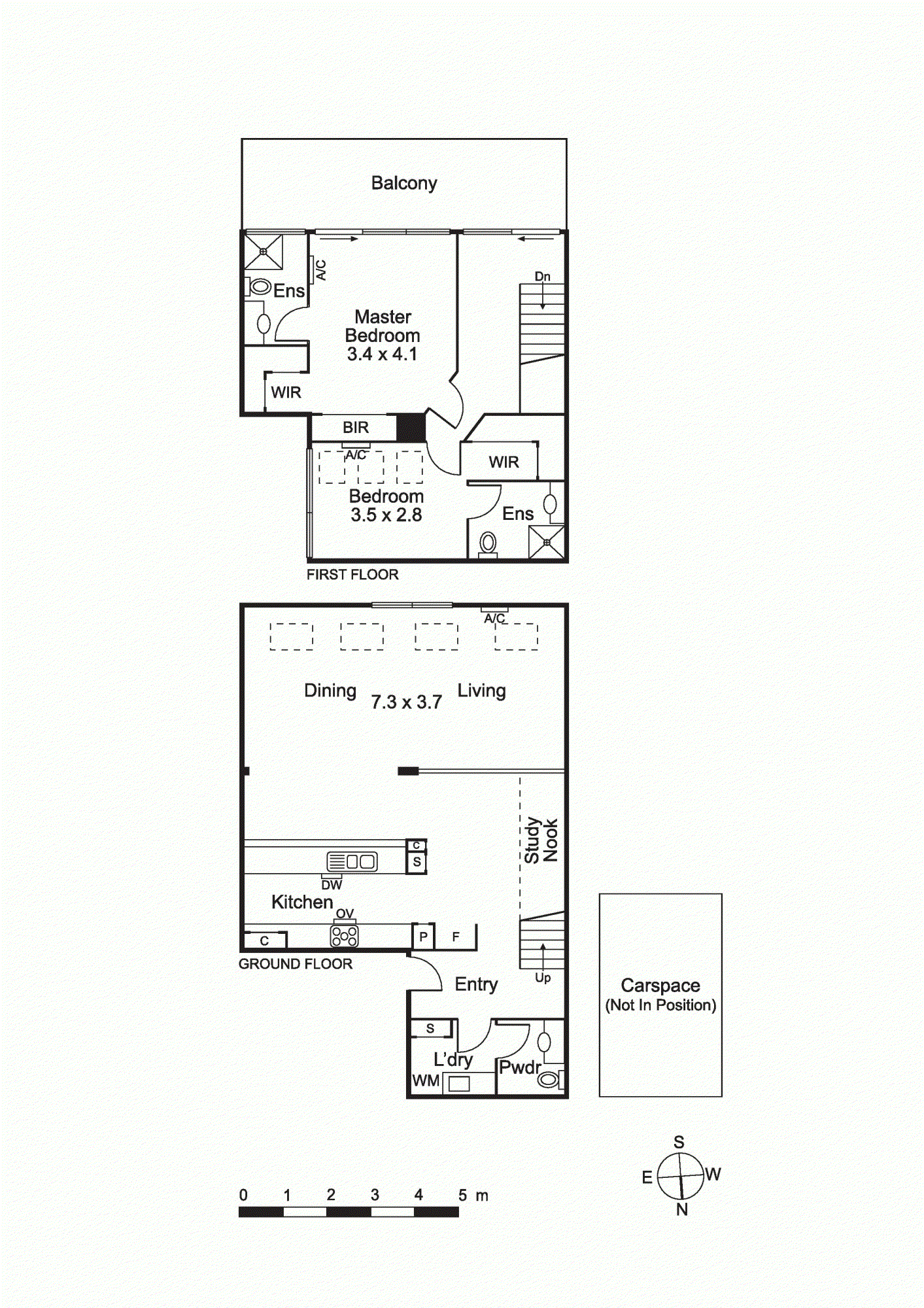 Comfort is ensured year-round with split-system heating and cooling, while skylights enhance the natural brightness throughout. The property also includes a secure car space and is part of an exclusive complex of only 12 residences.